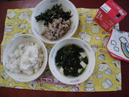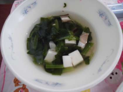 すまし汁の中には,とうふ・ほうれん草・干しいたけが入っており,だし昆布・けずりぶしのうま味が引き立つすまし汁でした。