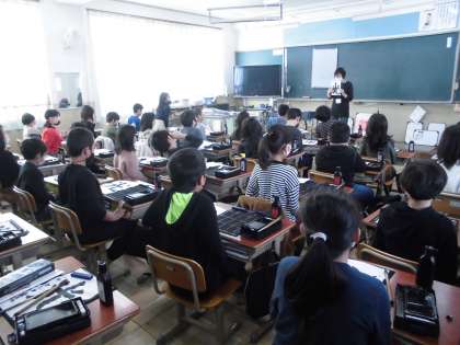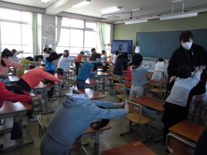 朝,保健委員会の児童が作ったスライドを見ながら姿勢体操をして体をスッキリさせた後,授業の中で立腰を意識して過ごせていたか,チェックをしました。