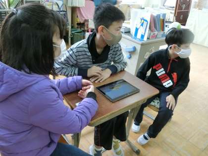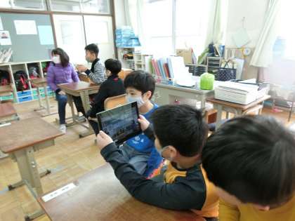 「今回は,タブレットで写真に撮って,見せ合いっこしますよ!」