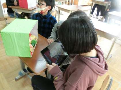 若草学級 タブレットを使ってみよう2 公開日 2021/02/11 更新日 2021/02/11 若草学級 「さあ,いよいよ,作品の写真を撮りますよ。1番見てほしいところがわかるように写真を撮ってみましょう。」 「よーし,撮るぞ!」 「撮った写真を見てみるよ。」 「OK!」 「ちょっと撮りなおししよう。」 撮った写真を貼り付けて,みんなで交流しました。