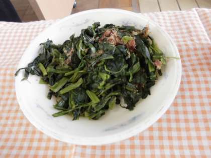 ほうれん草のおかか煮には昆布からひいただしを使って調理しました。かつお節の香りも加わり美味しくいただきました。