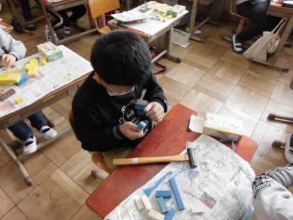 3年生 くぎ打ちトントン 公開日 2021/02/17 更新日 2021/02/17 3年生 何度か打ち込むうちに,きれいにまっすぐ打てるようになってきました! 集中しているので,けが人も0人。 順調です。