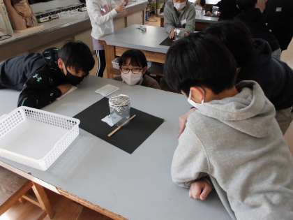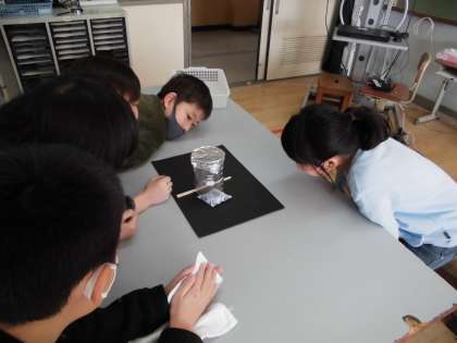 4年生 理科 公開日 2021/02/17 更新日 2021/02/17 4年生 『もののあたたまり方』の学習です。 今日は,理科室で実験をしました。 線香のけむりを使って,あたためられた空気の動きを見ました。 「水の時と同じ動きしてる!」「水より動きが大きい!」「ぐるぐる円のように動いてる!」などの話し合いながら進めることができました。 実験の回数が重ねるごとに,注意することをしっかり守って実験することができるようになってきています。