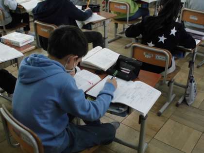 4年生 国語 公開日 2021/03/01 更新日 2021/03/01 4年生 『まちがえやすい漢字』の学習です。 国語辞典を使って語句の意味を調べ,例文を考えました。 友達と協力して調べたり,作った文を交流したりして考えを深めました。