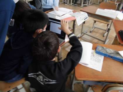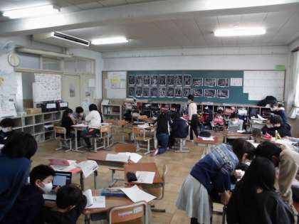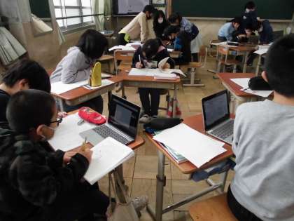 今日は,GIGA端末を使って,それぞれの班が作ったアンケートに答えました。