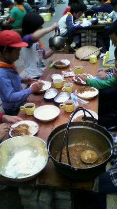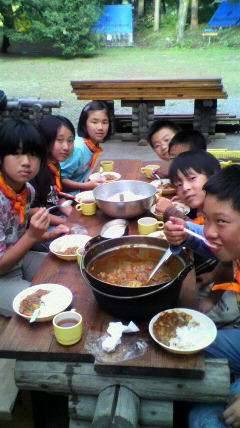カレー作りは大成功だったようですね。しっかり食べて,大満足の様子です。
