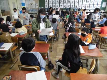 3年生 国語「これが私のお気に入り」 公開日 2021/03/05 更新日 2021/03/05 3年生 国語で取り組んでいる「これが私のお気に入り」の学習。 今日はグループで発表の練習をしました。 明日はいよいよお家の人に発表する日です。中止になってしまった参観の代わりに,お家での発表ですが,みんな張り切って練習していました。 みんなの成長した姿をしっかり見せてあげてくださいね。