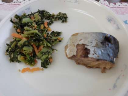 さばのしょうが煮は,骨に気を付けながら食べていました。
