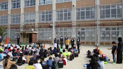 0408 令和3年度のスタート!〜着任式〜 公開日 2021/04/08 更新日 2021/04/16 学校の様子 いよいよ令和3年度がスタートしました! 朝,久しぶりに登校してきた子どもたち。 「おはようございます!」と,いつもより大きな声で, 新年度へのやる気が伝わってきました。 今日は天気がよいので,2つの式を運動場で行いました。 まずは,着任式。 7名の教職員をお迎えしました。 お名前やお顔を早く覚えて,一緒に勉強したり,遊んだりしましょう!