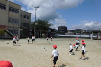 「えい!」「ナイスキャッチ!」「届いた!」と,ボールを使って友達と楽しく運動することができました。
