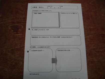 0416 4年生 キャリアパスポート 公開日 2021/04/19 更新日 2021/04/19 4年生 キャリアパスポートの「4年生 わたし」を書きました。 子どもたちの大切な物や将来の夢が出てきました。 また,がんばりたいことなども書くことができました。 1年間を通して,すてきなみなさんに成長してくれることを願っています。 保護者のみなさんへ キャリアパスポートの用紙を持ち帰っています。 1番下の『おうちの人から』というところに,励ましのコメントをお願いいたします!