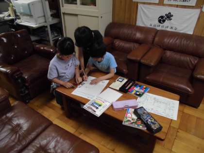 学校探検で巡る各所のポスター作りのため,調査に出向いているとのこと。