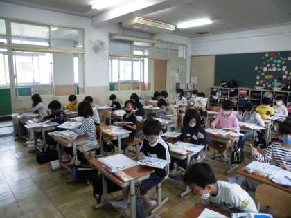 0422 3年生 図工「絵のぐ+水+ふで=いいかんじ!」を学習しました!