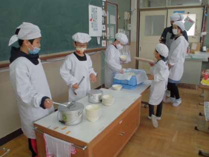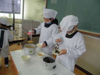 0423 若草学級 給食おいしいね 公開日 2021/04/26 更新日 2021/04/26 若草学級 2グループに分かれて給食当番をしています。 ご飯をよそう人,おかずをよそう人,くばる人,牛乳をくばる人。 自分の役割をがんばっています。 「ハッピーキャロット入ってた!」 「今日のお野菜,おいしいね。」 「ごはん,おかわりしたーい。」 毎日,おいしい給食が楽しみです。