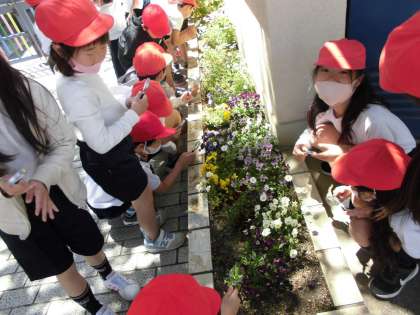 0426 3年生 「しぜんのかんさつ」パート2! 公開日 2021/04/26 更新日 2021/04/26 3年生 今回は,虫めがねの使い方を確かめたあと,実際に虫眼鏡で虫や草花の様子を観察しました。畑や花壇の花をじっくり見て,驚きの声を挙げていました。 色や形,大きさなどのちがいを見比べるためにも,虫眼鏡をうまく使って様子を見ていました。小さな花やアリなどの虫たちの様子を詳しく見ていました!!