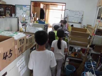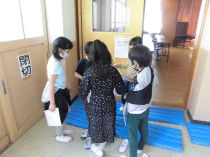 北校舎の学校探検では,事務室や用務員室,校長室に入りました。普段,中々入ることのない場所ばかりで,子どもたちも興味津々で,2年生の説明を聞いたり,その場所にいる先生のお話を聞いたりと楽しそうに過ごしていました。