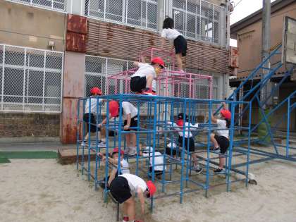 体育科の学習で,遊具の使い方の学習をしています。