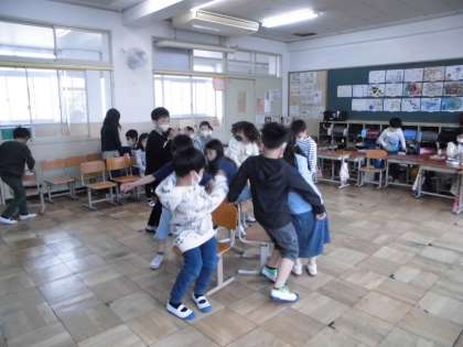 今回は「椅子取りゲーム」です。音楽を流してくれるのも,進行役もすべて係の子どもたちです。