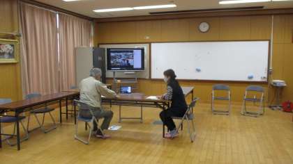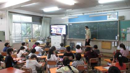 オンラインで教室とつなぎながら,子どもたちは各教室で話を聞き,疑問に思ったことなどを質問しました。