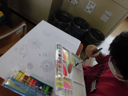 今日は図工で「心のもよう」という作品作りに取りかかりました。