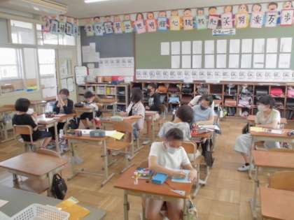 保健係の仕事は,健康観察チェックカード作りやしおりの保健のページ作り。