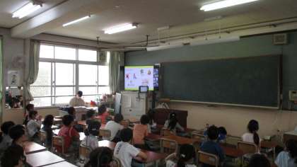 校長先生のお話を聞き,絵本の読み聞かせを聞きました。