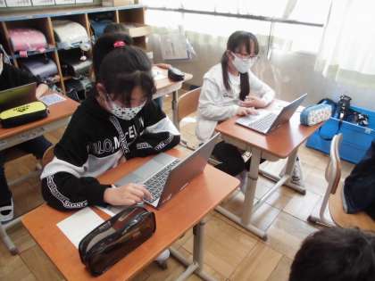 作品の写真カードを見て,その作品の良いところや作者が伝えたいメッセージ等を考えて,友達に紹介しました。