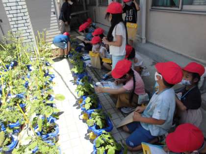 今日は,あさがおの観察をしました。