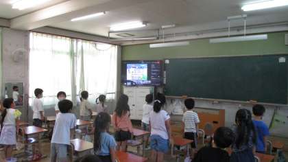今日は,Microsoft Teamsを活用して,職員室のコンピュータと各教室をつなぎました。