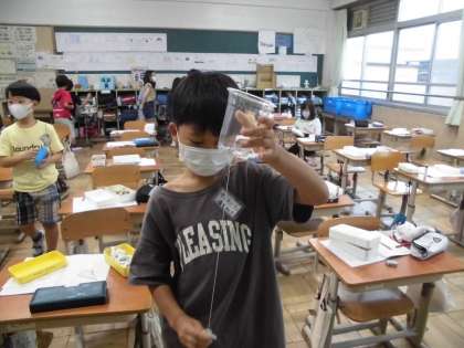 理科の学習で,音のふしぎについて探るために実験をしました。