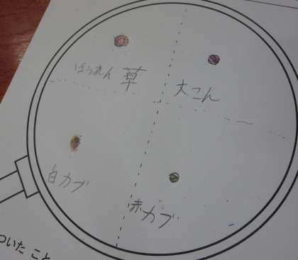 ほうれん草,かぶ,大根の種を観察すると・・・「先生!模様がある!」「思ってたより小さいなあ」
