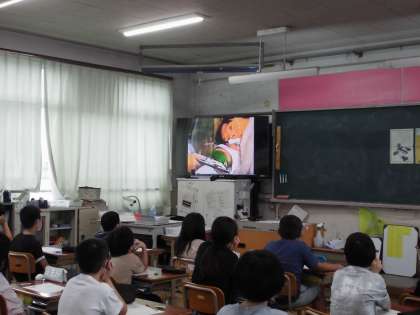 不慮の事故で首から下が不自由になった星野富弘さんの作品や実際の映像から,感じたことを交流しました。