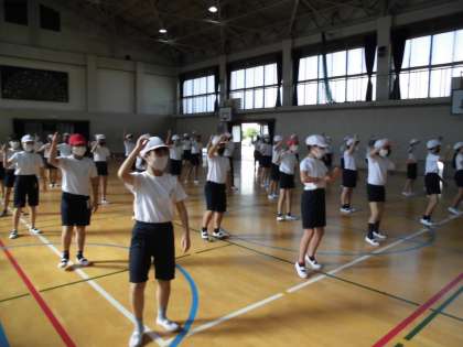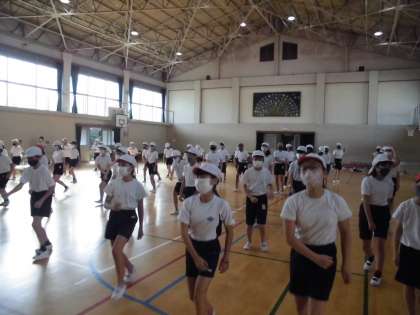 子どもたちにとって小学校最後の体育フェスティバルの練習が始まりました。学年で集まることもずいぶん久しぶりになります。今年度は,ダンスとフラッグを使っての演技に取り組んでいます。どんどん動きを覚えていく子どもたちの吸収力の速さに毎時間驚いています。