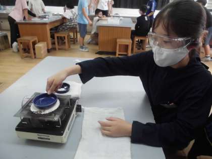 今日は「水溶液に溶けた食塩やミョウバンは,取り出すことができるのだろうか」という学習問題で実験しました。