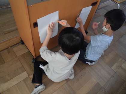 1年生の図工科では,身の回りにある,でこぼこを見つけて紙に写し取りました。平べったいと思っていたところも,本当はこんな模様があったんだと驚きながら楽しんで学習をしていました。この模様を使ってどんな絵ができるかな?