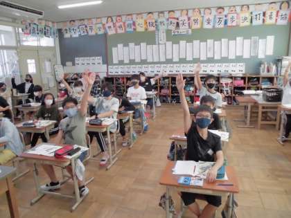 「まかせてね 今日の食事」の単元に入りました。6年生も後半になり,食品の栄養素や様々な調理の仕方,料理の出来上がりの彩りの大切さなども学習しました。今日は,写真の料理から,主食・主菜・副菜の確認や汁物を付けることでその実(具のこと)によって,より栄養バランスを整えることができる事に気が付きました。