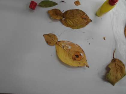 3年生の図画工作科では,落ち葉の特徴を生かして作品作りをしています。