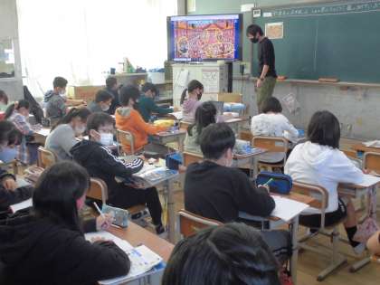 1101 6年 社会 公開日 2021/11/01 更新日 2021/11/01 6年生 「町人文化と新しい学問」 江戸の芝居小屋の光景を表した絵から, 多くの観客でにぎわい,自由に楽しんでいる様子や気が付いたことを話し合いました。。