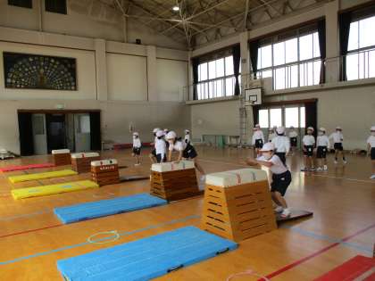 体育の跳び箱遊びでは,6段に挑戦している子もいます。
