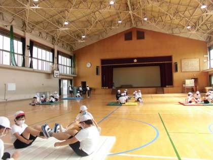 今日は準備の仕方や学習の流れを確認し,足相撲とケンケン相撲をしました。