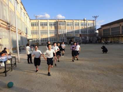 体力向上を目指し,放課後の運動場をみんなで走ります。