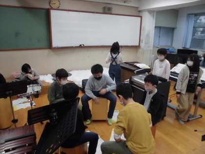 音楽の授業の後は教室で劇の練習です。(写真をとりわすれました)