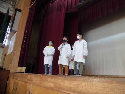「緊張したけど,ハキハキ伝えることができました。」「友達と協力しながら,小道具を作って楽しかったです。」とキラキラした顔で感想を伝えてくれました。