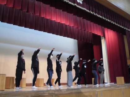 本番前は,「合わせる」気持ち,「楽しむ」気持ちを大切にすることを確認しました。自分も楽しむ,友達も楽しむ,見てくださるみなさんも楽しむことができる舞台にしようと頑張ってきました。