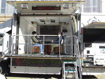 地震体験車に乗ったりバケツリレーに参加したり,放水体験をさせていただいたりと貴重な経験ができました。