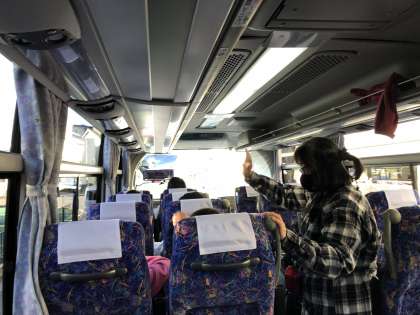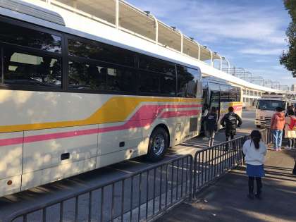 出発式が終わり,バスに乗り込みました。さあ,旅の始まりです。目的地の姫路セントラルパークに向けて出発します。