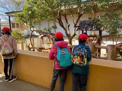 歩いていると,バスの中から見ていたのとは違う動物を見ることができます。