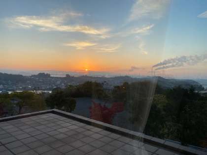 おはようございます。素敵な朝を迎えました。写真は宿舎からの日の出の様子です。