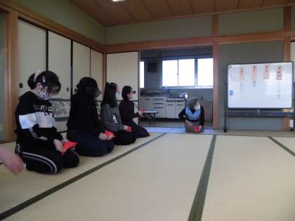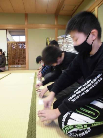 前回の活動日から2週間経っているせいか,袱紗捌きがおぼつかない児童もちらほら。