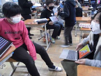 事前にタブレットで行きたい国について調べ,